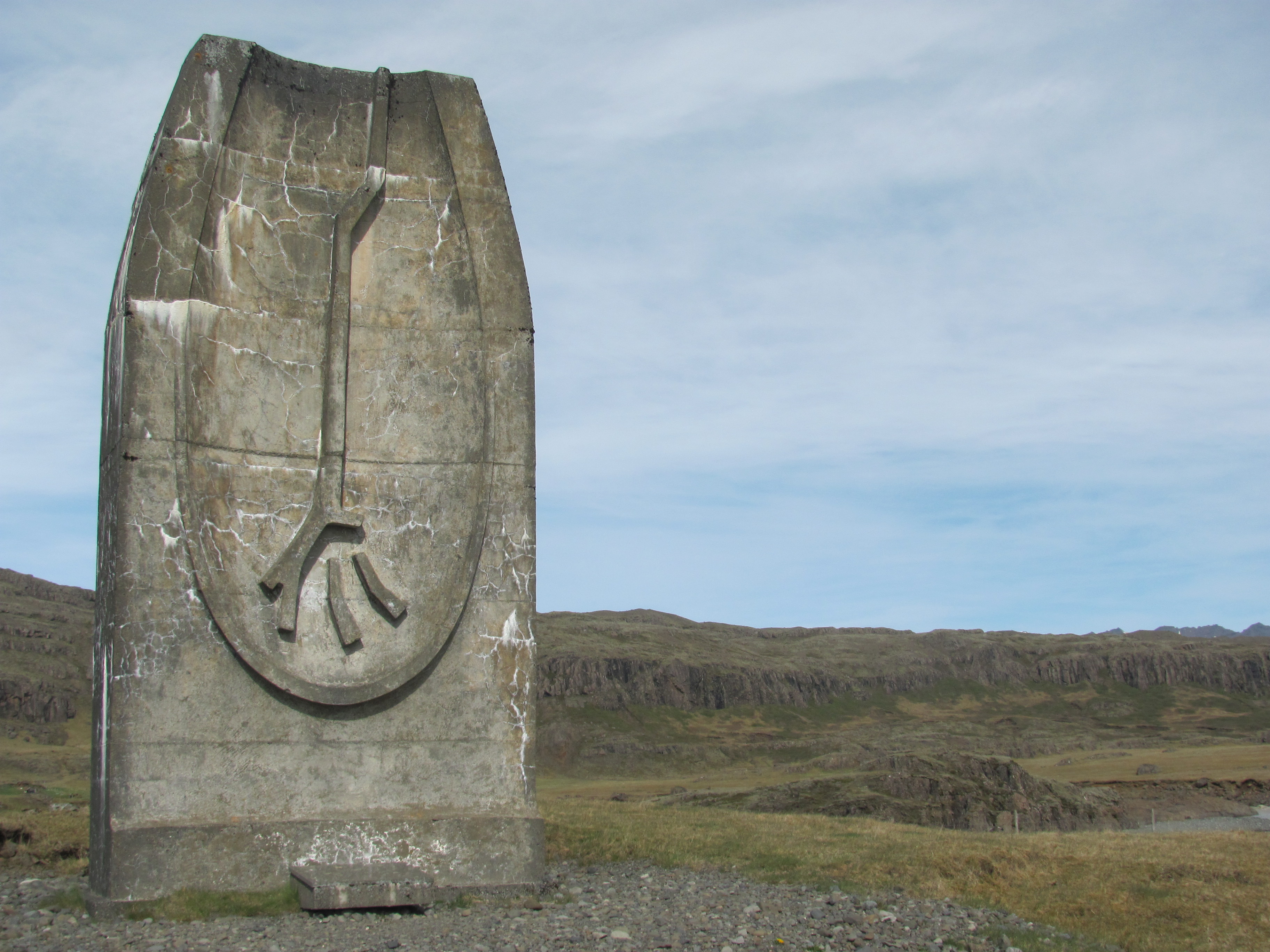 By the way, the stone is not a Viking artifact—it is a modern monument. The photo also looks as though it has been retouched—making it look more like a computer generated image—since the actual monument is pretty weathered.